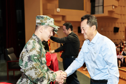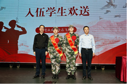 2025年9月,北语六名优秀本科生、研究生光荣参军入伍。12日下午,学校在书记“开学第一课”上庄重举行了新兵出征仪式,校党委书记倪海东为学生佩戴光荣花、副校长黄益方为学生佩戴绶带,武装部、学院负责人、辅导员老师、全体新生共同见证了这一光荣时刻。
