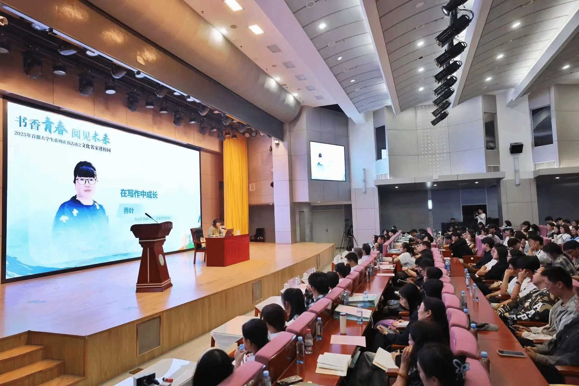 互动环节气氛热烈,北语及兄弟高校学子围绕乡土写作的突破路径、作品真实性的平衡、细节捕捉能力的培养等问题踊跃提问,乔叶逐一细致回应。北语教师教育学院大一学生王姿然作为《宝水》的忠实读者,分享了自己的感悟:“在进京求学的列车上,望着家乡渐远,我才真正读懂小说中人与故乡的羁绊。乔老师‘贴着人物写作’的建议让我顿悟,阅读是理解世界的窗口,写作是抵达内心的桥梁。”她表示自己平日也在网络更新小说,此次讲座让她明晰“读书先于写作”的道理,更懂得了共情与同理心对创作的重要意义。
