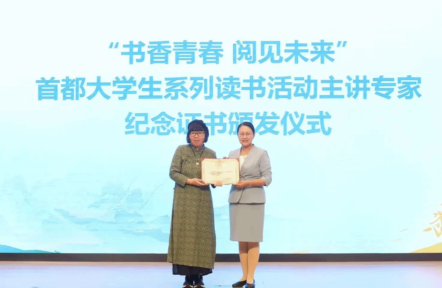 9月17日下午,“书香青春,阅见未来”2025年首都大学生系列读书活动之“文化名家进校园活动”在北京语言大学举行。北京作协副主席、茅盾文学奖得主乔叶带来“在写作中成长”主题分享,并与多所首都高校师生代表共话读书、写作与成长,鼓励学生把握当下、深耕阅读。市委教育工委副书记张宇蕾出席活动,为乔叶颁发主讲专家纪念证书,我校党委常委、副校长黄益方出席活动并致辞。活动开始前,黄益方副校长在教一楼荣麟厅会见了张宇蕾副书记、乔叶副主席一行。