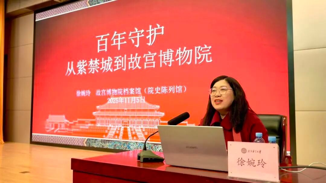 徐老师以“百年守护——从紫禁城到故宫博物院”为题为师生带来了一场精彩讲座。国际政治与传播学院党委书记谢刚、校工会副主席赵冠群和400余名学生参加。讲座由党委学工部副部长袁胤婷主持。