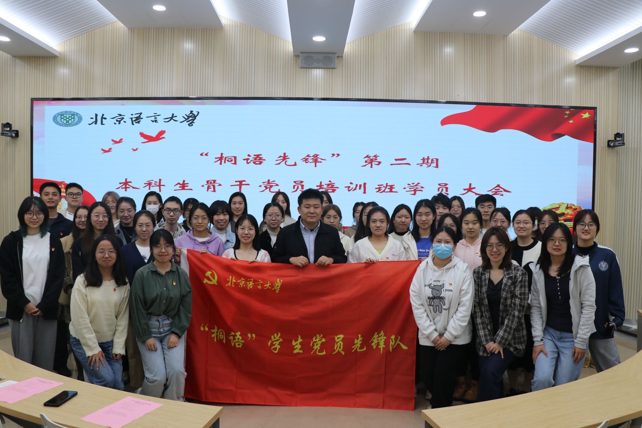 最后,张洋老师肯定了本次学员大会的成果,并对各位学员提出了几点希望。张洋老师首先向学员们解读了“桐语先锋”的内涵:“桐”代表梧桐,梧桐可谓北语的图腾,“语”即北语,“桐语”有表达学生党员声音之意,也希望学员们发挥带头作用,做党员学生骨干中的先锋。随后,张老师强调了作风意识,要以一个共产党员的标准要严格要求自己,遵守课堂纪律,发挥好个人先锋模范作用,树立良好的学风,学深悟透,入脑入心,在实践中锤炼党性品格。最后,张洋老师对学员们提出了殷切期望。成为党员不是追求进步的终点,而是发挥先锋表率作用的起点。希望学员们持续保持学习热情,圆满完成第二期“桐语先锋”本科生骨干党员培训班的学习任务。