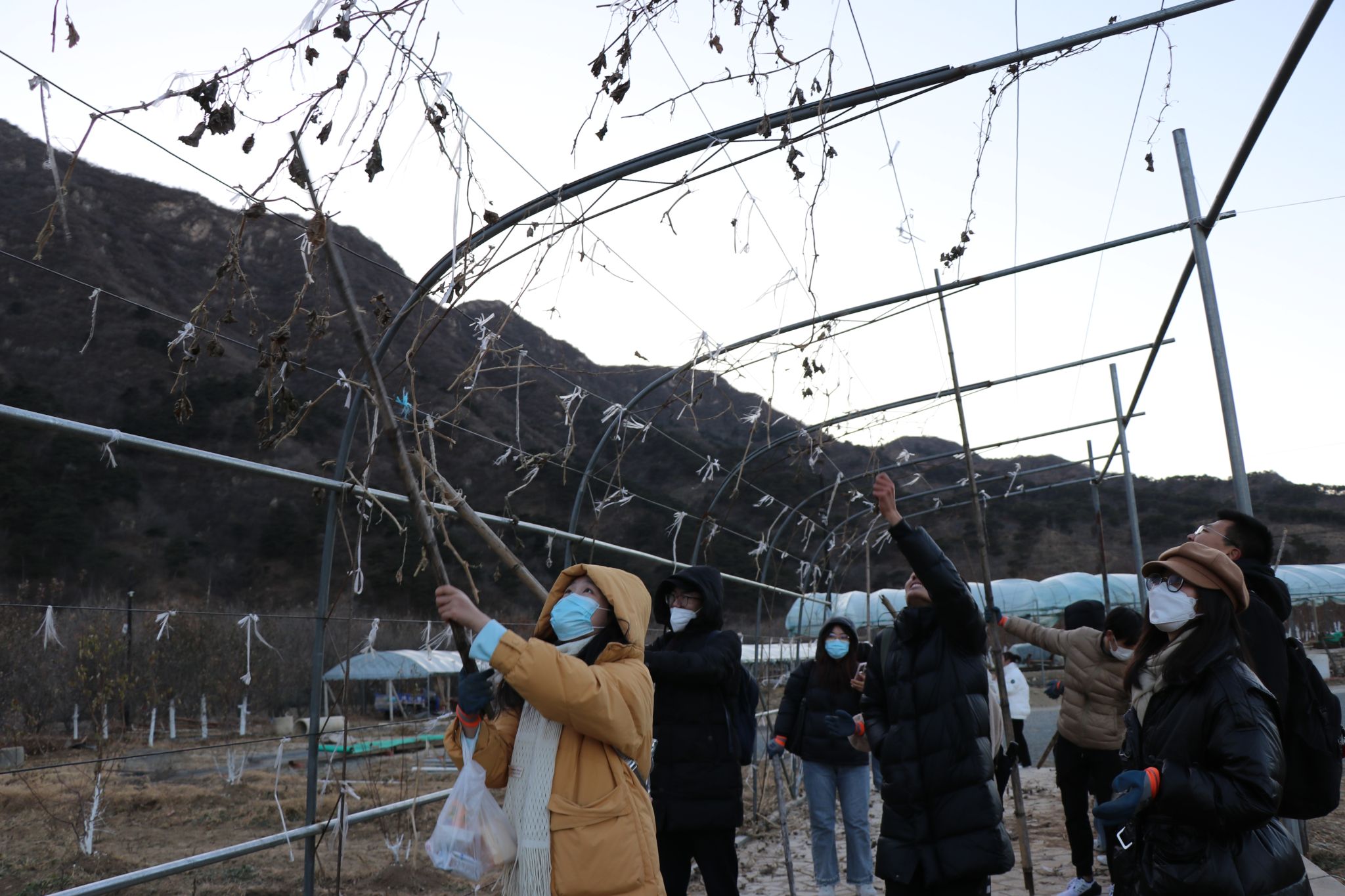 紧接着,在刘慧敏及其团队的带领下,培训班成员们一同走进农户田地,积极参与劳动教育。同学们在农事活动中了解农耕、感受自然,体验了农事的辛勤与快乐,深度感受初冬时节的乡村气息。尽管天气十分寒冷,但同学们的干劲和热情丝毫未减。