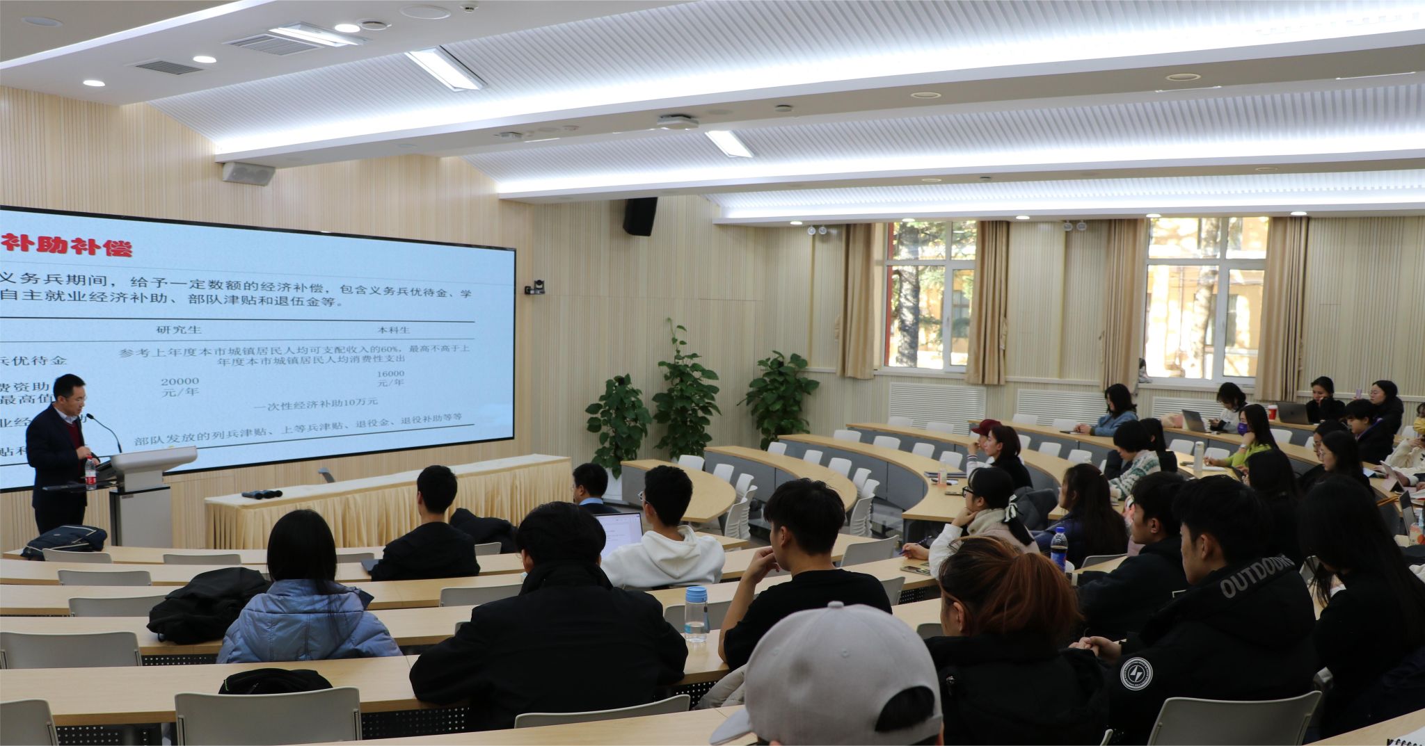 为进一步做好我校大学生参军入伍工作,11月29日下午,校党委学生工作部、武装部在教二楼101教室组织召开大学生应征入伍政策宣讲会。各学部院系本科生、研究生辅导员,退役大学生士兵代表,有参军入伍意愿的在校生共数十人参与本次活动。