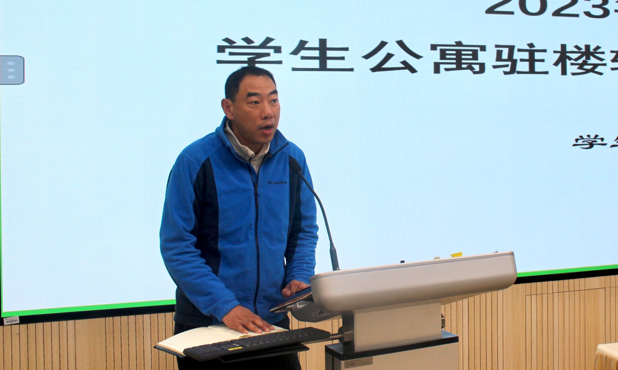 最后,保卫处副处长张洋老师强调,作为驻楼辅导员应履行的安全工作职责,他希望每一名驻楼辅导员都应当高度重视并认真做好学生安全教育和管理工作,以此次专题培训为契机,在接下来岁末年初,期末寒假前夕协助学校楼宇、保卫、学工、研工以及各学部院系做好学生公寓学生安全教育管理工作,将培训中所学的技能和知识落实到日常驻楼工作中。