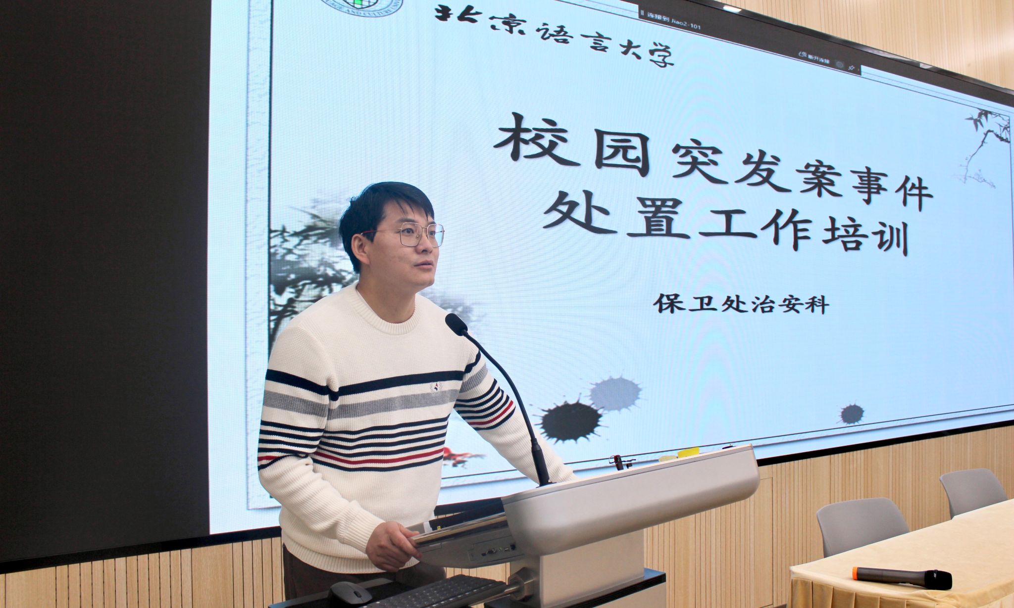 本次驻楼辅导员安全培训是自《北京语言大学学生公寓驻楼辅导员管理办法(试行)》发布以来,落实驻楼辅导员制度的第二次专题培训,此次培训进一步明确了学生公寓驻楼辅导员安全工作职责,让全体驻楼辅导员学习掌握近期校园和学生公寓楼内安全工作形势、技能知识以及未来工作的重点和方向。未来,学生处将联合保卫处及各培养单位,在关键时间节点,通过理论和实践相结合的方式,持续加强驻楼辅导员队伍安全教育培训工作,助力平安北语及和谐学生社区建设。