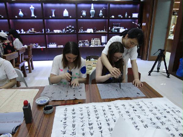 在活动中,中外学生结伴交流,通过共同体验陶艺制作、茶道体验、书法练习、围棋技法,国际学生感知中国传统文化精髓,加强对中华文化的理解与认知,中国学生通过与国际学生的沟通交流提前了解国外交流学校的风土人情和校园文化,知晓上课方式和学习模式的差异,为即将到来的留学生活做好准备。