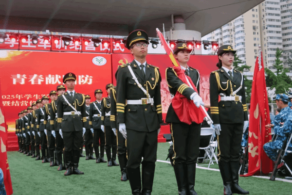 倪海东书记为本次军训做总结讲话。他表示,学校始终高度重视并持续关注军训施训情况,短短的两周时间,在教官的严格要求下,同学们克服暑热、斗志昂扬,认真投入队列训练、急救包扎、激光战术对抗等科目的学习、操练,锻炼身体素质、锤炼意志品质,取得了显著进步,国旗护卫队和“烽火小队”更以加倍的刻苦训练挑战自我、追求卓越。今年是中国人民抗日战争暨世界反法西斯战争胜利80周年,80年前先辈用血肉铸就长城,今日同学们用汗水锻造军魂。军训不仅是一次体能和意志的淬炼,更是一堂引导青年筑牢正确国防观、历史观的沉浸式思政大课。他向同学们提出了三点期望,希望同学们在奋进征程中勇担使命、砥砺奋斗、躬身实践:一是铸赤子之心,做红色基因的“传承者”。军训结束后,希望同学们永葆赤诚之心,传承北语“语言报国 文化兴国”的红色基因,将青春梦想汇入强国洪流,以“德行言语”传递红色火种,用“敦睦天下”践行报国担当;二是砺钢铁之志,做奋斗征程的“攀登者”。希望同学们永葆钢铁意志,以军训中培育出的不畏艰难、一往无前的优秀品格,直面未来的挑战,在成长道路上坚韧不拔、勇攀高峰;三是强青春之体,做知行合一的“开拓者”。希望同学们以军训为新的起点,坚持体育锻炼,保持昂扬斗志和健康生活方式,积极参加校园活动和社会实践,用脚步丈量祖国大地,以青春奋斗为中国式现代化挺膺担当。