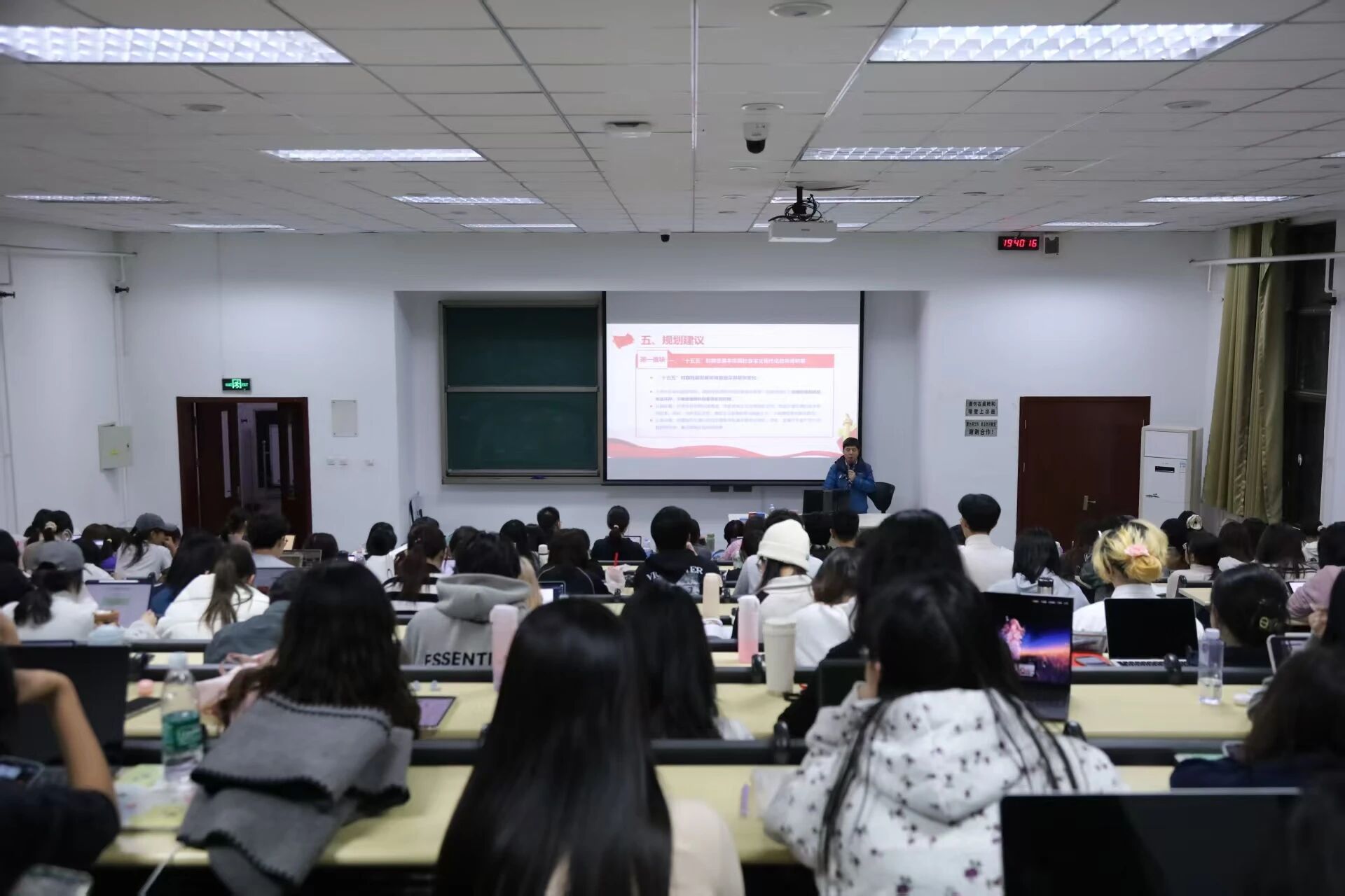 随后,裴老师聚焦“十五五”规划核心要义,针对当前战略机遇与风险挑战并存的复杂局面,强调必须坚持稳中求进工作总基调,着力发展实体经济与新质生产力,加快建设全国统一大市场,实现“有效市场”与“有为政府”的有机统一。同时,裴老师还围绕民生保障、乡村振兴、国家安全与文化自信等重要议题,结合生动案例深入剖析相关战略部署,并勉励北语学子发挥外语能力及专业优势,在国际舞台上积极讲好中国故事,展现可信、可爱、可敬的中国形象。