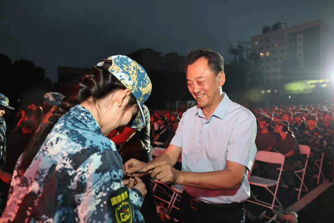 倪海东书记为本次军训做总结讲话。他表示,学校始终高度重视并持续关注军训施训情况,短短的两周时间,在教官的严格要求下,同学们克服暑热、斗志昂扬,认真投入队列训练、急救包扎、激光战术对抗等科目的学习、操练,锻炼身体素质、锤炼意志品质,取得了显著进步,国旗护卫队和“烽火小队”更以加倍的刻苦训练挑战自我、追求卓越。今年是中国人民抗日战争暨世界反法西斯战争胜利80周年,80年前先辈用血肉铸就长城,今日同学们用汗水锻造军魂。军训不仅是一次体能和意志的淬炼,更是一堂引导青年筑牢正确国防观、历史观的沉浸式思政大课。他向同学们提出了三点期望,希望同学们在奋进征程中勇担使命、砥砺奋斗、躬身实践:一是铸赤子之心,做红色基因的“传承者”。军训结束后,希望同学们永葆赤诚之心,传承北语“语言报国 文化兴国”的红色基因,将青春梦想汇入强国洪流,以“德行言语”传递红色火种,用“敦睦天下”践行报国担当;二是砺钢铁之志,做奋斗征程的“攀登者”。希望同学们永葆钢铁意志,以军训中培育出的不畏艰难、一往无前的优秀品格,直面未来的挑战,在成长道路上坚韧不拔、勇攀高峰;三是强青春之体,做知行合一的“开拓者”。希望同学们以军训为新的起点,坚持体育锻炼,保持昂扬斗志和健康生活方式,积极参加校园活动和社会实践,用脚步丈量祖国大地,以青春奋斗为中国式现代化挺膺担当。