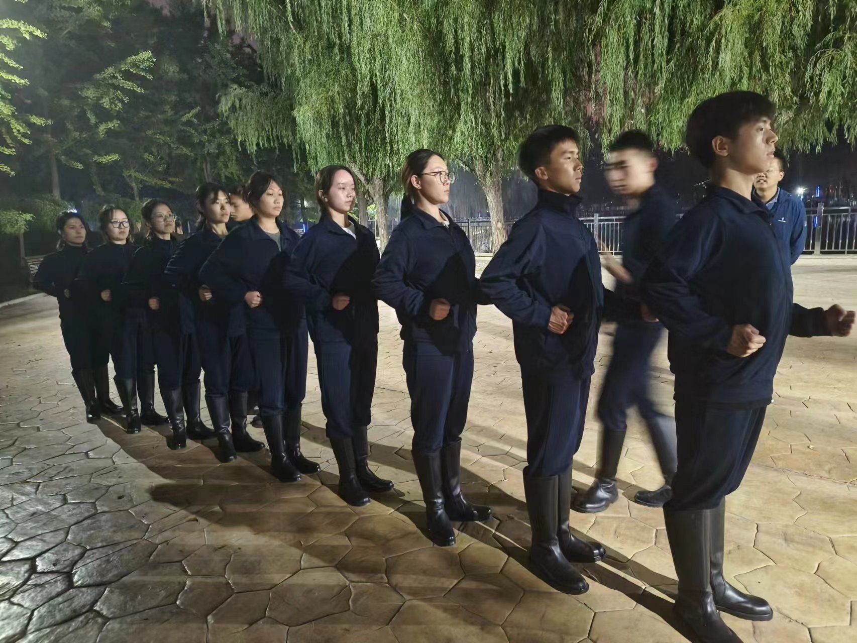 本次大赛是我校国旗护卫队首次参加全国比赛,对这支年轻的队伍来说既是机遇更是挑战。学校高度重视、精心组织,学校武装部直接指导,选派精兵强将编组参赛队伍,邀请2023年军训承训部队教官悉心指导。队员们自愿放弃国庆假期休息时间,全身心投入紧张的赛前训练。以竞赛规则为标准,严格选拔参赛人员,细扣队列动作,学习动作要领,熟悉比赛流程。时间十分紧迫,参赛队员克服重重困难,牢牢把握每次训练机会,每晚坚持训练到十点,没有丝毫松懈。