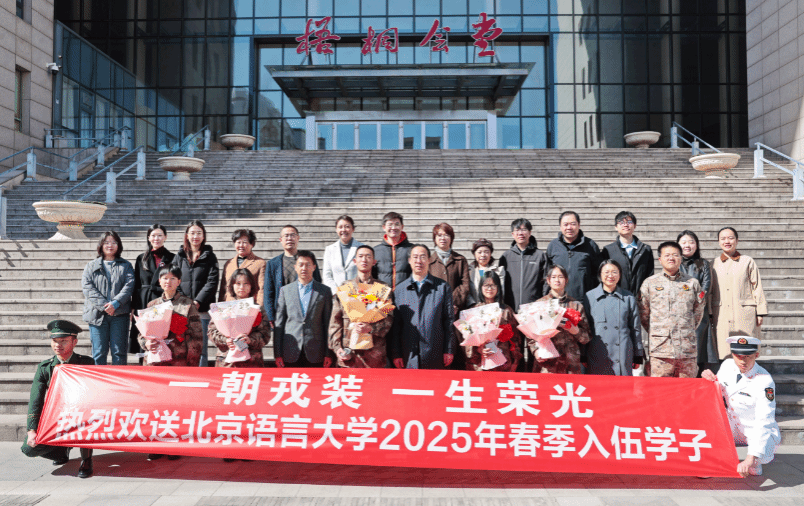 2025年3月,北语五名优秀本科生光荣参军入伍。12日上午,学校在梧桐会堂东侧广场举行春季学子入伍欢送会,校党委常委、副校长黄益方出席,武装部、相关学院负责人、辅导员老师、学生代表等参加。