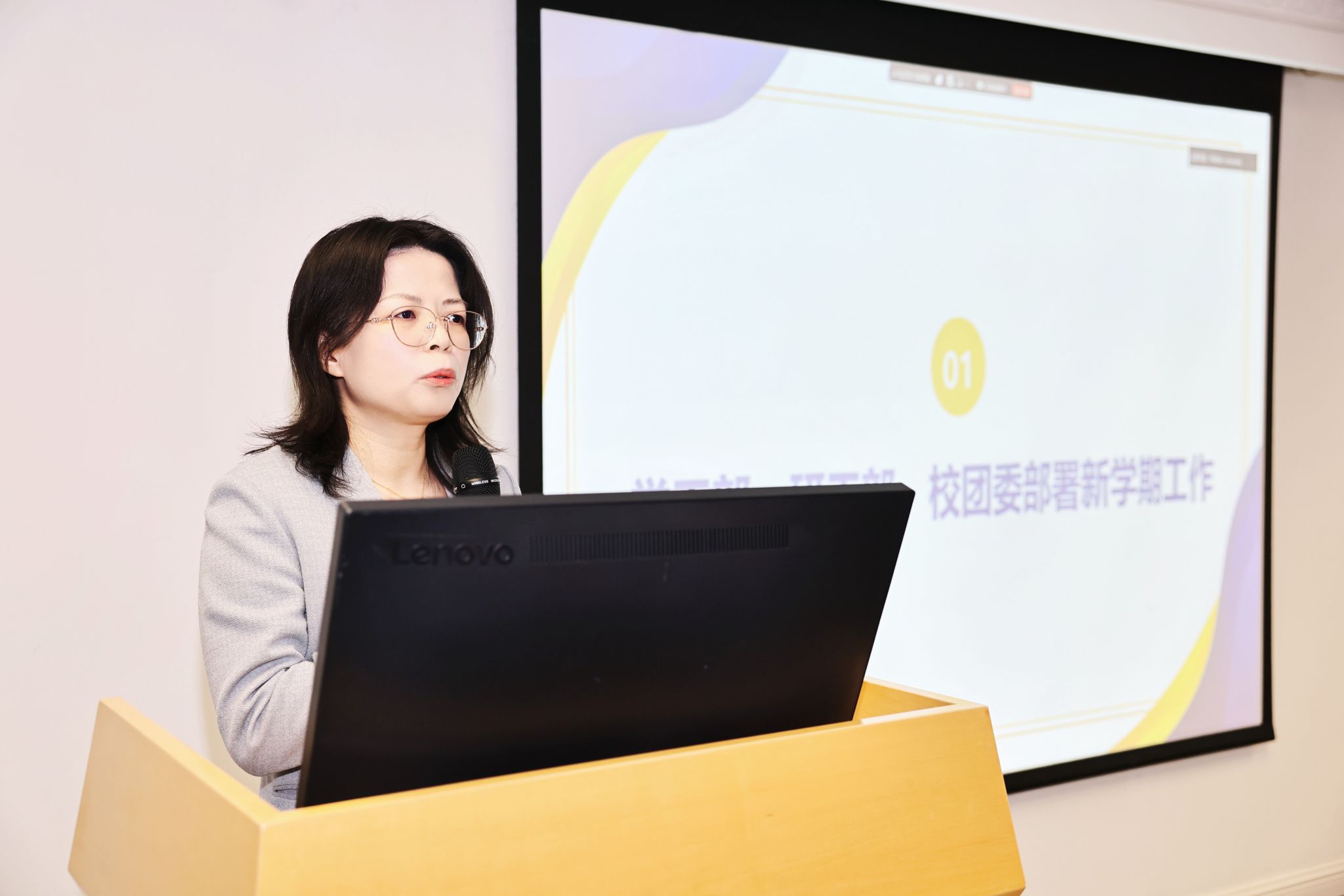 研工部副部长刘洁对本学期开展高质量党建引领育人、推进健康理念融入导学思政及强化对研究生的差异化关注等工作提出要求。