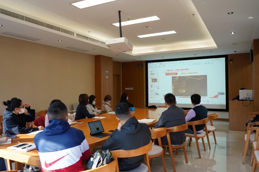 为深入贯彻习近平总书记“七一”讲话精神,落实北京市“永远跟党走”主题教育活动和学校党史学习教育工作要求,开展好2020级本科生2021年秋季学期形势与政策课授课工作,10月20日,我校学生工作队伍与马克思主义学院共同开展“党史百年”主题形势与政策课集体备课。备课由马克思主义学院形势与政策课教研室主任冷鸿基主讲,学工部副部长张洋主持,参与授课的本科生、研究生辅导员及学生处、团委老师参加。