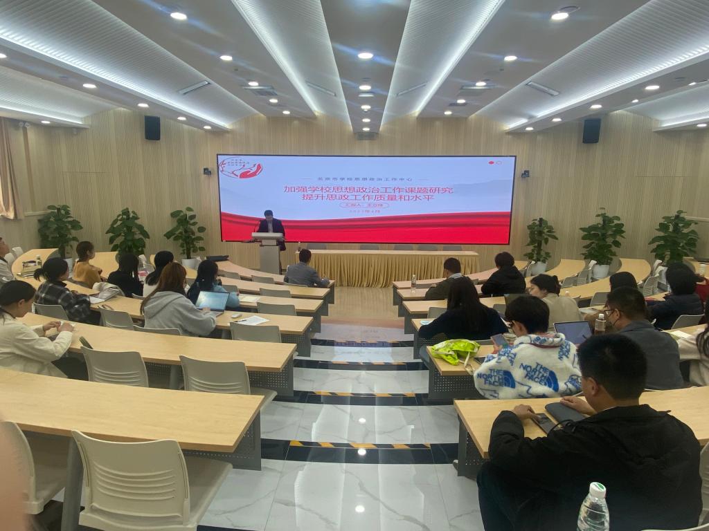 王立锋老师以“加强学校思想政治工作课题研究 提升思政工作质量和水平”为题进行了报告。他分别从学校思政课题研究的重要意义、北京思政课题开展基本情况、如何开展规范“有料”的研究以及如何加强课题管理四个方面进行了细致的讲解。他指出,学校思政课题研究是“重要抓手”,是服务学校思政工作队伍的重要平台。通过开展思政课题,能够总结经验、开创局面,也能破解学校在不同阶段面临的各项重难点问题。