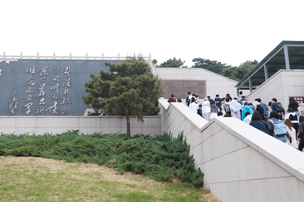 师生们在西山无名英雄广场上列队肃立,在讲解员的带领下,认真学习了以吴石、朱枫等革命先烈为代表的建国前后中共对外隐蔽战线的英雄事迹。西山无名英雄广场是为纪念上世纪五十年代为国家统一、人民解放事业牺牲于台湾的大批隐蔽战线、忠贞不渝、宁死不屈无名英雄而建。英雄们的名字刻在花岗岩墙壁上,以阴文素镌,若隐若现,既暗合了隐蔽战线的斗争特质,也彰显其淡泊名利的高尚品格。广场迎面是以黑白两色曲线隐喻海峡两岸的巨幅景观墙,气势雄伟,中有毛泽东主席题诗:“惊涛拍孤岛,碧波映天晓。虎穴藏忠魂,曙光迎来早”。背面镌刻主碑铭,全铭文217字,微言大义,字字千钧。