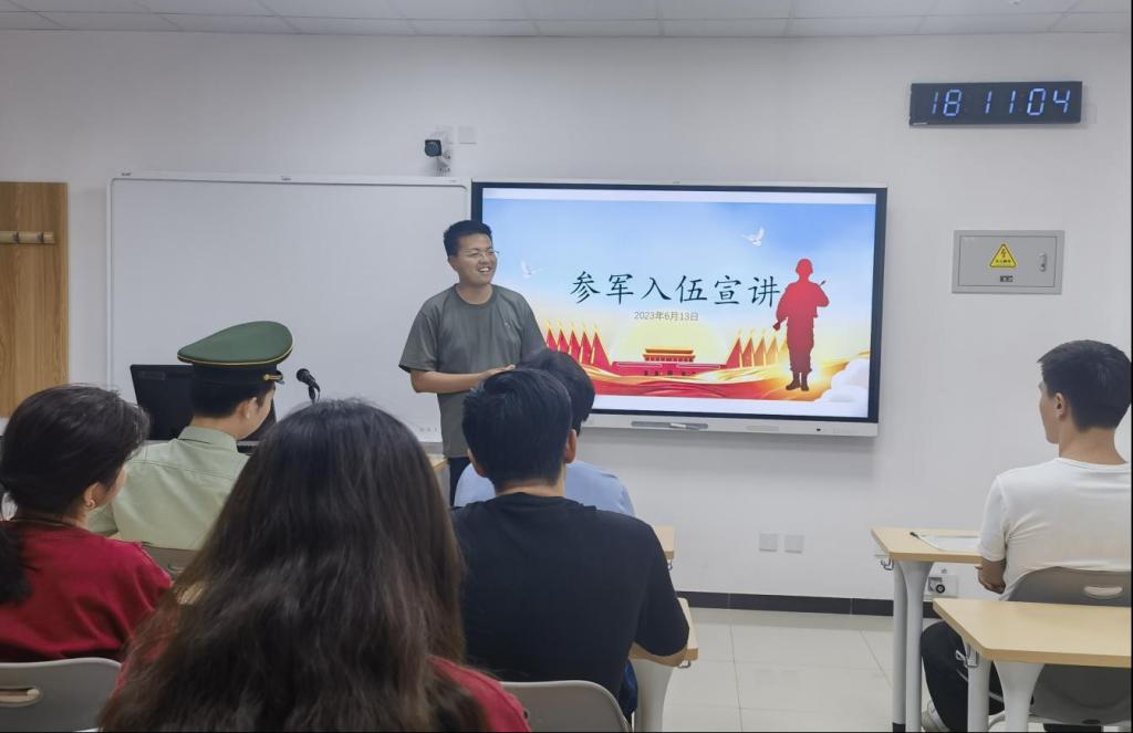 武装部军事教研室钦浩老师从大学生参军入伍的程序、基本条件,从复学升学、经济补助、就业优待、进京落户等六方面为同学们讲解大学生参军入伍相关政策,并就同学们所关心的问题进行了细致的讲解。