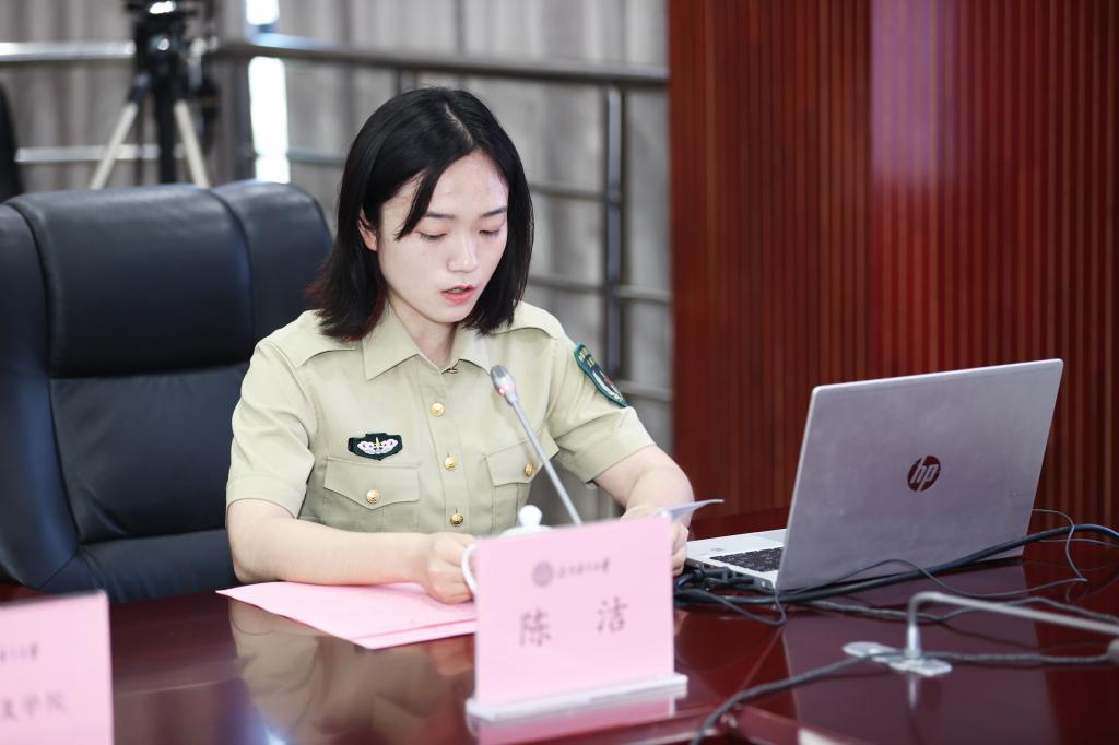 我校退役复学大学生士兵陈洁作为入伍学生代表分享了自己应征入伍的心路历程,对参军入伍过程中学校的关怀和鼓励表示了衷心的感谢,代表我校退役复学学生群体表达了“退伍不褪色,永葆军人本色”的决心,一定要在个人的学习生活中保持人民军队光荣传统和优良作风,努力学习,积极工作,为学校事业发展贡献自己的力量。陈洁同学英姿飒爽、意气风发,一举一动间的军人气质令与会领导老师赞叹不已。