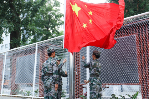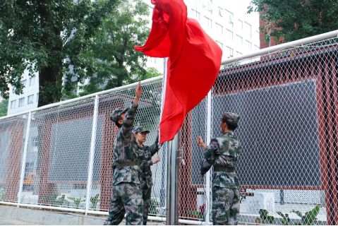 上午八点三十分,各连队集合完毕。伴随着庄严的国歌,旗手奋力将国旗展向天空,五星红旗冉冉升起,北京语言大学2023年学生军训结营仪式正式拉开帷幕。